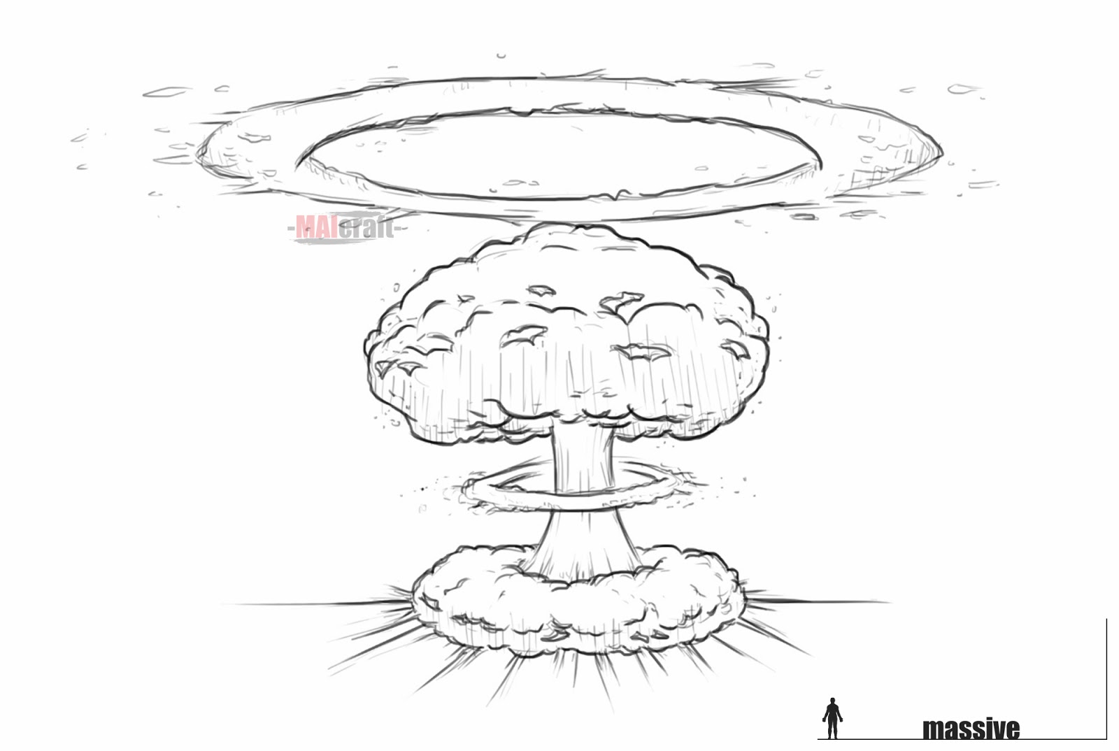 Если вы хотите изобразить более реалистичный взрыв, то вам понадобится плотная бумага, простой карандаш, желтая акварель, оранжевый и красно-оранжевый пастельный мелок, а также желтый, коричневый и черный карандаши. Сначала нужно нарисовать линию горизонта, на которой будет находится взрыв. Затем едва заметными неровными линиями сделайте набросок дыма от взрыва, напоминающий огромное облако.