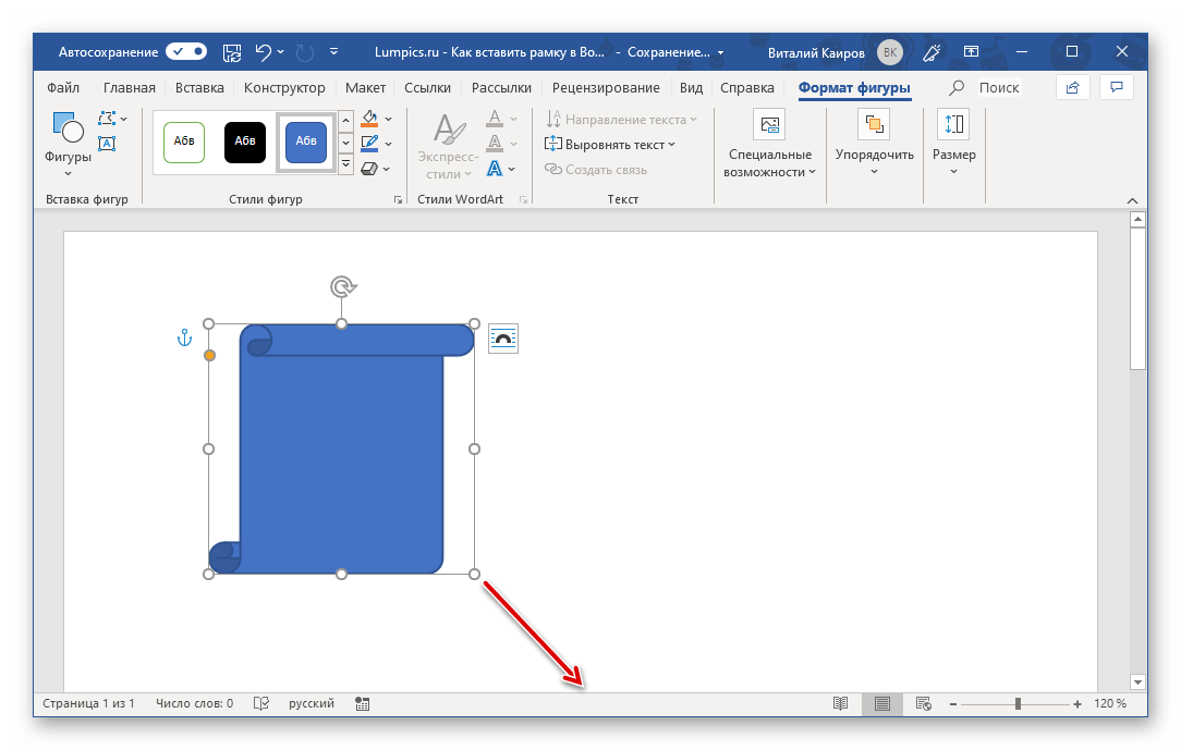 Аналогично таблице размером в одну ячейку, для создания рамки в Word можно обратиться к разделу вставки фигур. К тому же возможности их оформления, предоставляемые программой, куда более широкие.